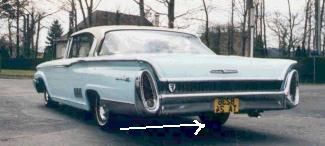 Below, a Mercury Parklane, 1960. Note the rear wheel position beneath the middle of the car, and the angle it is