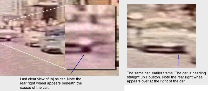 The enlargements below show that the LBJ SS car is indeed turning, in the Hughes frame :