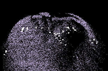 The animation (above) shows the metal in the skull. Where the location of any fragment is ambiguous, the algorithm I have used to 'find' it effectively 'smears' it over all possible locations. Hence some of the frags appear (ambiguously) as a group of 3,4 or 5 white blobs, running parallel to each other. The same principle applies to the main (skull) densities. Note the odd position of the 'cowlick' fragment(s), at the rear of the skull. apparently unrelated to the (apparent) bullet track across the very top of the skull.